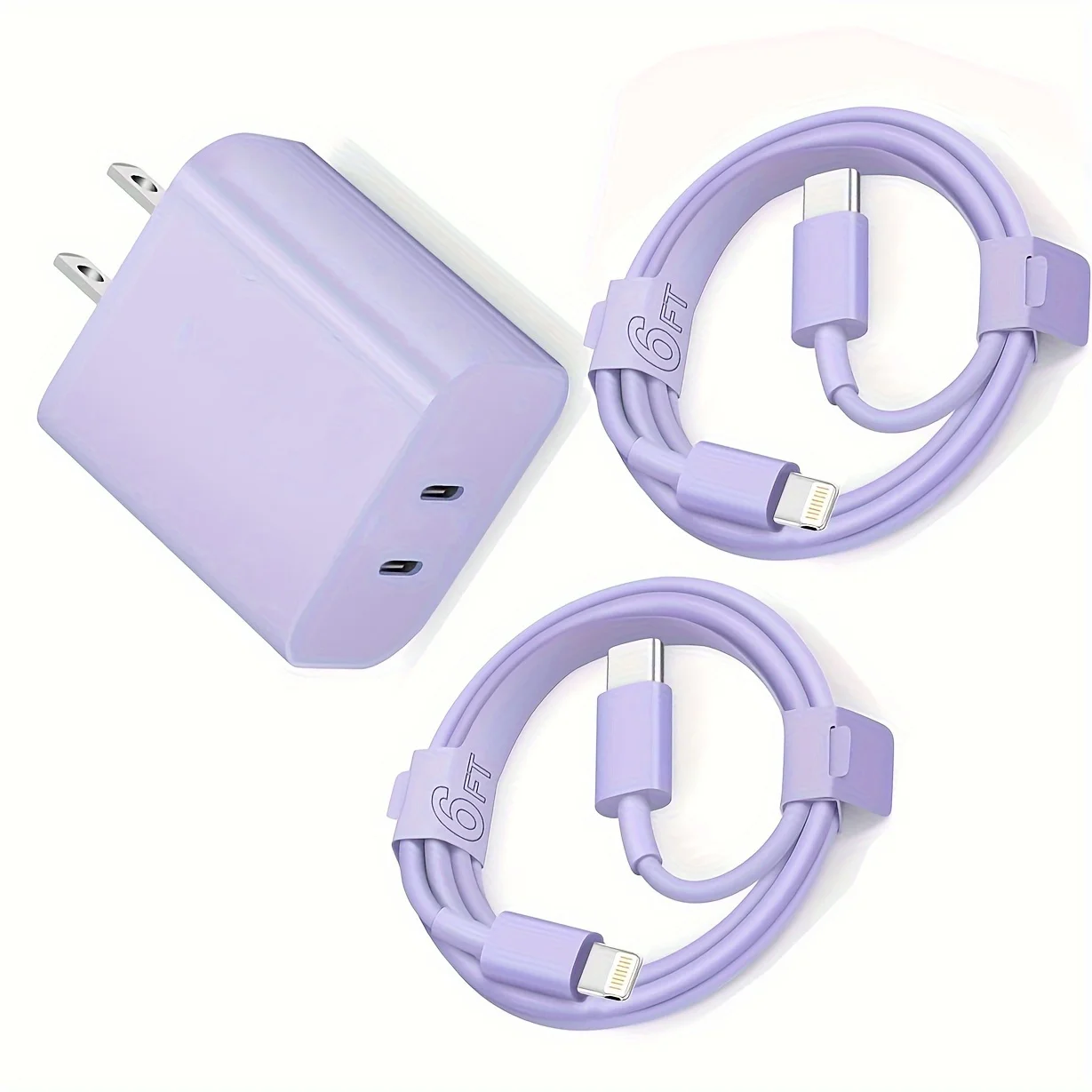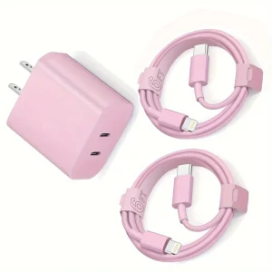 Power up your Apple devices quickly and safely with this dual-port 20W fast charging adapter. Designed for convenience and speed, this charging set includes two USB-C to Lightning cables, allowing you to charge multiple devices efficiently at home, in the office, or while traveling.