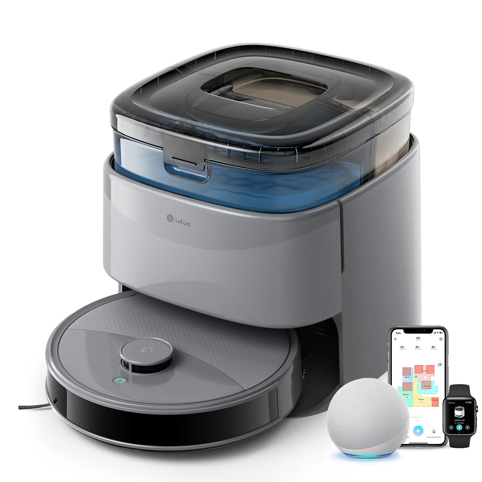Control the robot, schedule cleaning sessions, and customize cleaning zones using the Lefant app or voice assistants.